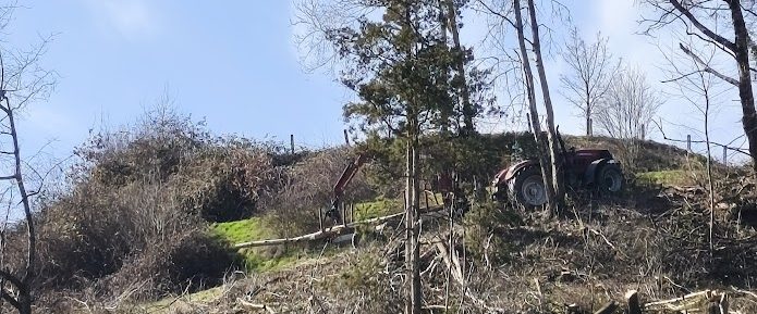Seit mehreren Tagen wird der Kreuzberg saniert. Bäume wurden gefällt und werden vom Kreuzberg abtransportiert.